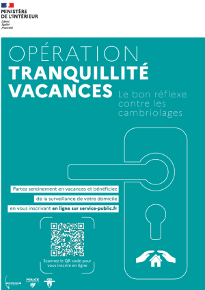 Opération Tranquillité Vacances de la Gendarmerie : Inscrivez vous en ligne . Retrouvez le QR code permettant de s'inscrire en ligne